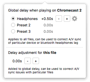 Detailed A/V sync adjustment where you can compensate for the delay of individual devices like bluetooth headphones? Airflow has it.