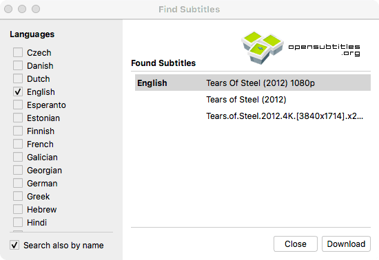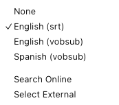 For both embedded and external subtitles. It's a bit of a secret that pretty much every other streaming software needs to extract embedded subtitle tracks before playing the video. That involves reading the entire file upfront! Crazy, right? Airflow needs no such crude tricks. Embedded or external, for our playback pipeline it's all the same. All widely used subtitle formats are supported, now including vobsub. Integrated opensubtitles.org search is a cherry on top.